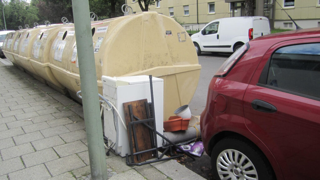 Es gibt Wertstoffinseln, die aufgrund ihrer Lage regelmäßig überlastet und durch daneben abgestellte Hausmülltüten verwahrlost sind, andererseits werden Wertstoffinseln im näheren Umfeld kaum aufgesucht. Als bekanntes Beispiel sei hier der regelmäßig vermüllte Standplatz an der Winterthurer-/Schaffhauser Straße genannt, während fußläufig hundert Meter weiter der Standplatz Berner Straße/südlicher Schuleingang kaum benutzt wird. Obwohl vielen Anliegern die Standorte bekannt sind, wird immer wieder beobachtet, dass häufig Pkw-Anfahrten (teils auswärtige Kennzeichen, Pendler mit Umstieg zur U-Bahn) zum Standplatz Winterthurer Straße erfolgen um dort den Hausmüll zu entsorgen. Bei diesem möglicherweise unberechtigten aber nicht auszuschließenden Personenkreis und auch Zuziehenden kann mit Hinweis auf weitere Wertstoffinseln im Umfeld eine Entlastung der betroffenen Standplätze erreicht werden.